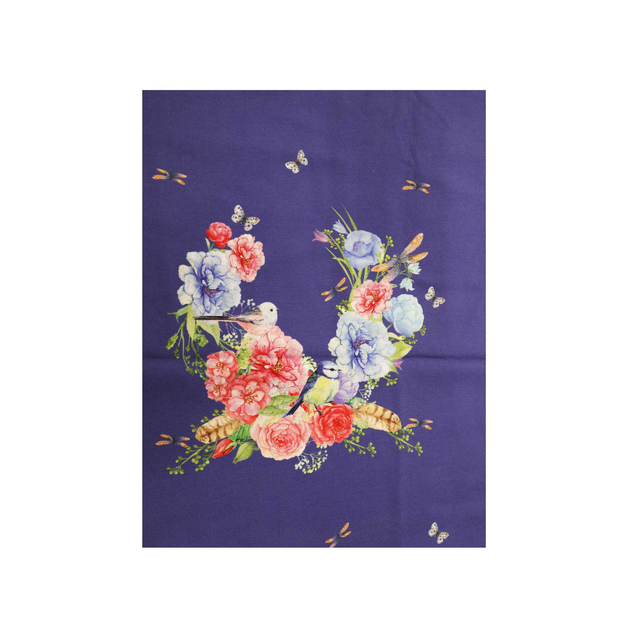 Kirju mustriga tumedam sinine trikookangas