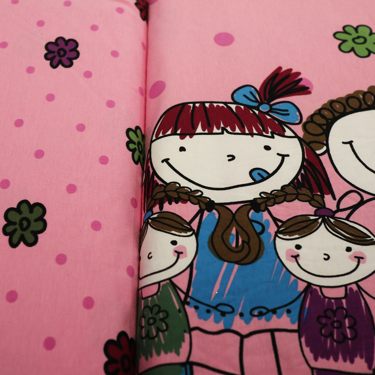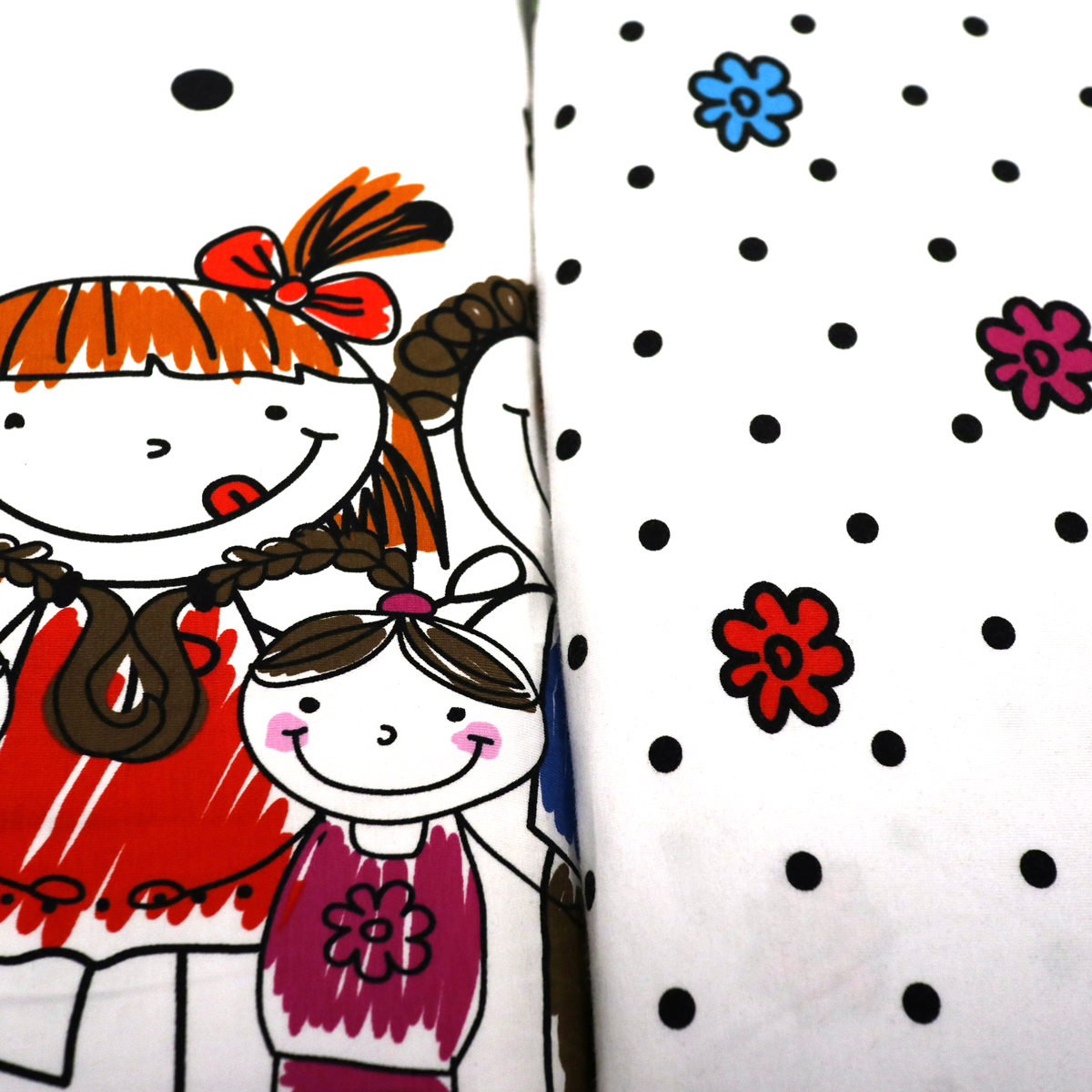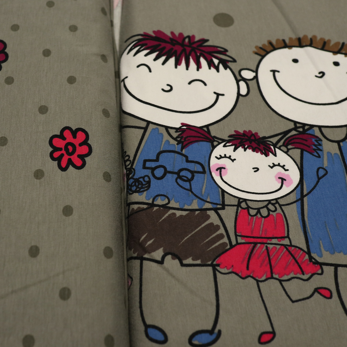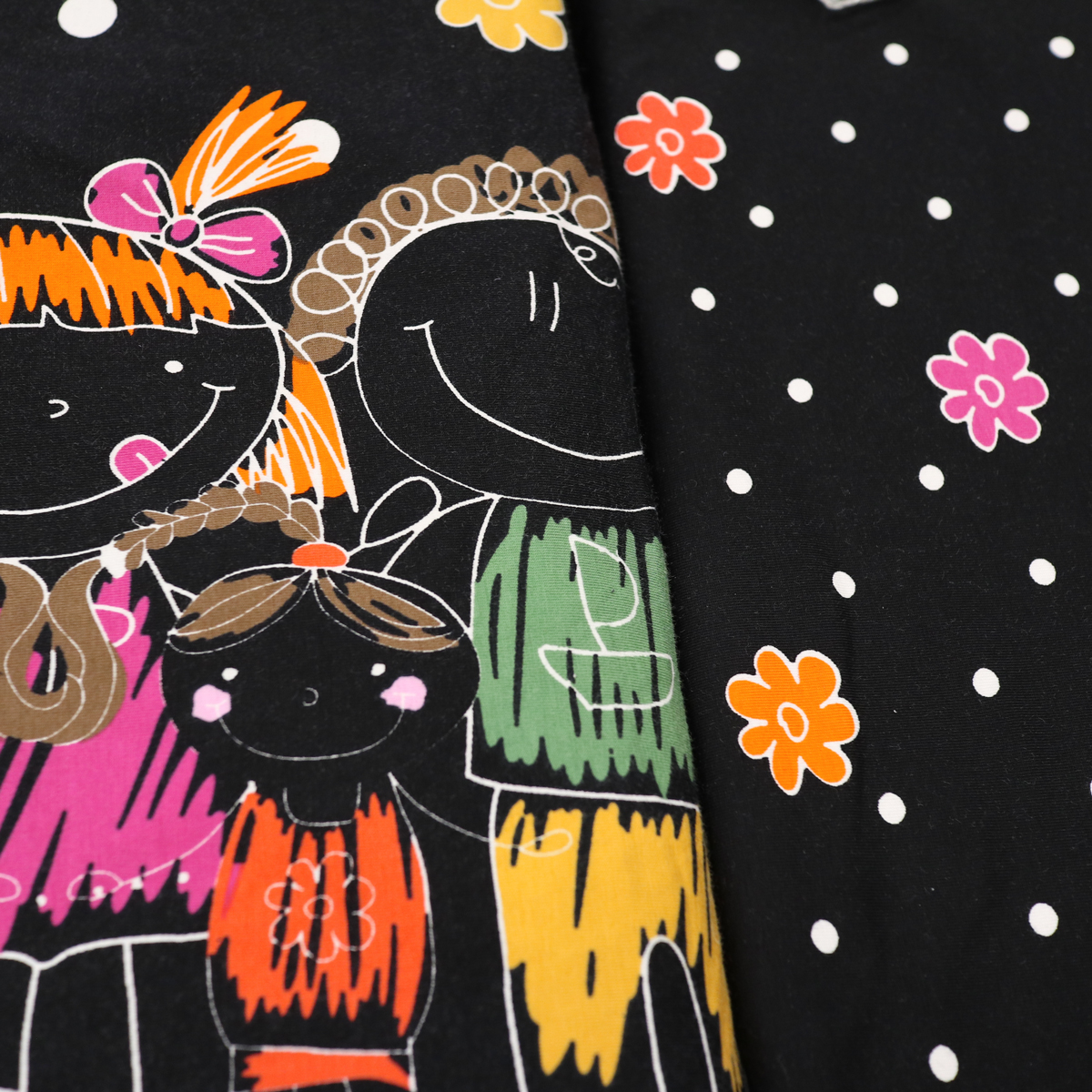 Rõõmsamustriline trikookangas sobib nii lasteriiete ja kodutekstiilide, kui ka lapitehnikas esemete õmblemiseks.